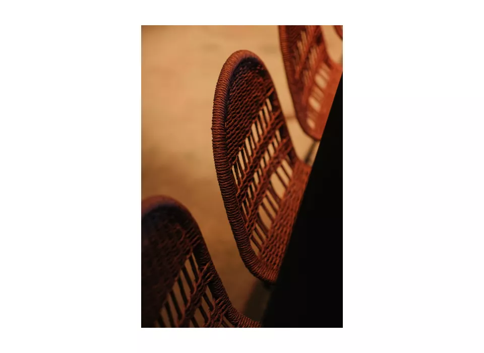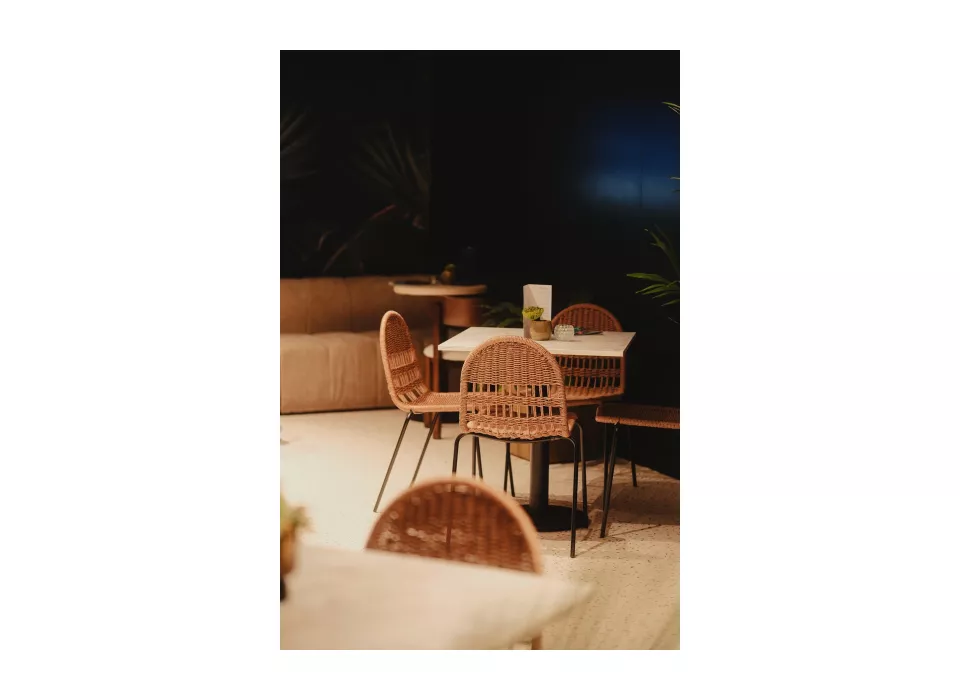 Paloma stoel – Onderdeel van de nieuwe Paloma-collectie, die naast eetkamerstoelen en barstoelen nu ook deze loungestoel omvat. Voorheen bekend als de Palm-collectie, brengt Paloma een samenhangende tropische uitstraling in elke ruimte.
